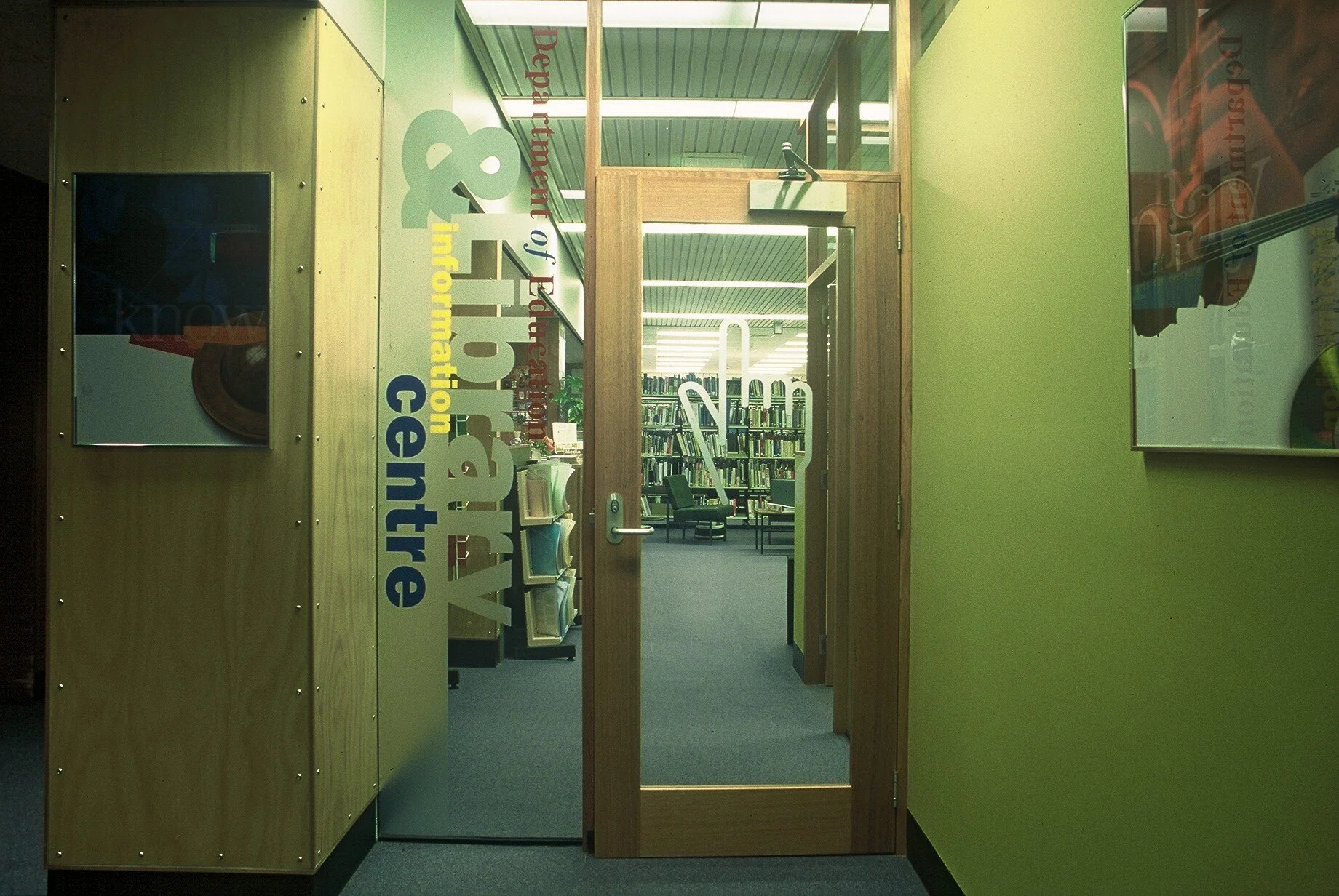 Libraries Tasmania engaged Luttrell Pyefinch to design the ‘Tasmaniana’ library – a purely Tasmanian collection comprising work from all Tasmanian authors. The project formed part of an ongoing redevelopment of the existing library, and involved designing an engaging and appropriate set of graphics and selecting materials that would not degrade the collection (low VOC, no glues or toxins). After multiple discussions with the archivist and library staff, Luttrell Pyefinch in collaboration with InkPot chose to reuse graphics from the collection and interpret them into screens, wayfinding materials and signage.